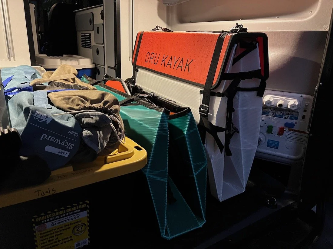 Oru folding kayaks in a 2023 Winnebago Revel 4x4 camper van [PHOTOS]