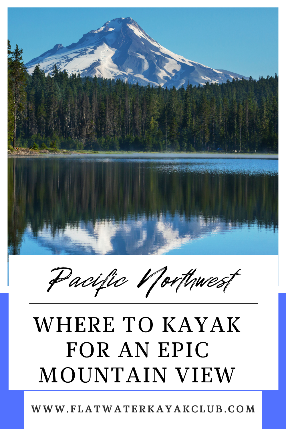 For recreational kayakers in the Pacific Northwest, there are many breathtaking lakes and rivers to explore and enjoy a mountain view on a clear day. Some popular flatwater kayaking spots include Trillium Lake and Lost Lake (Mt. Hood), Vancouver Lake and Scappoose Bay (Mt. St. Helens), and Owen Beach (Mt. Rainier).