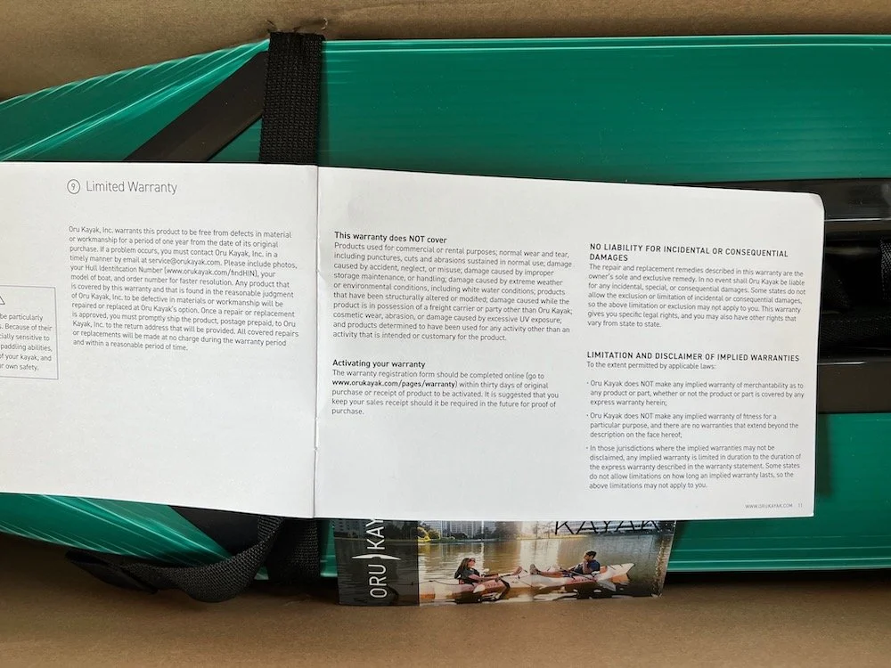 You must register for the warranty on Oru’s website within 30 days of receiving your boat.